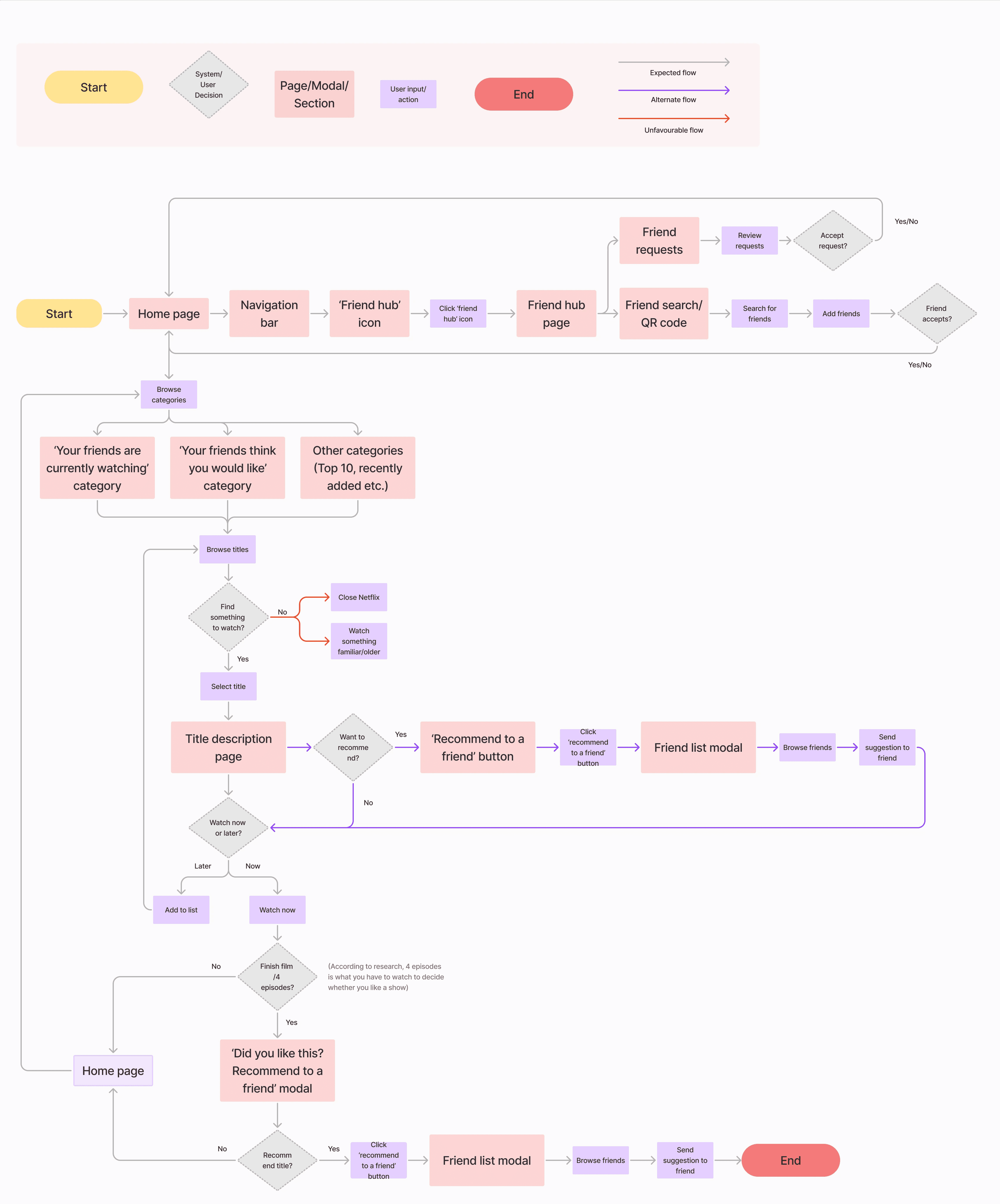 With these refined features in mind, I designed key user flows to ensure the social elements felt seamless within Netflix's existing experience.