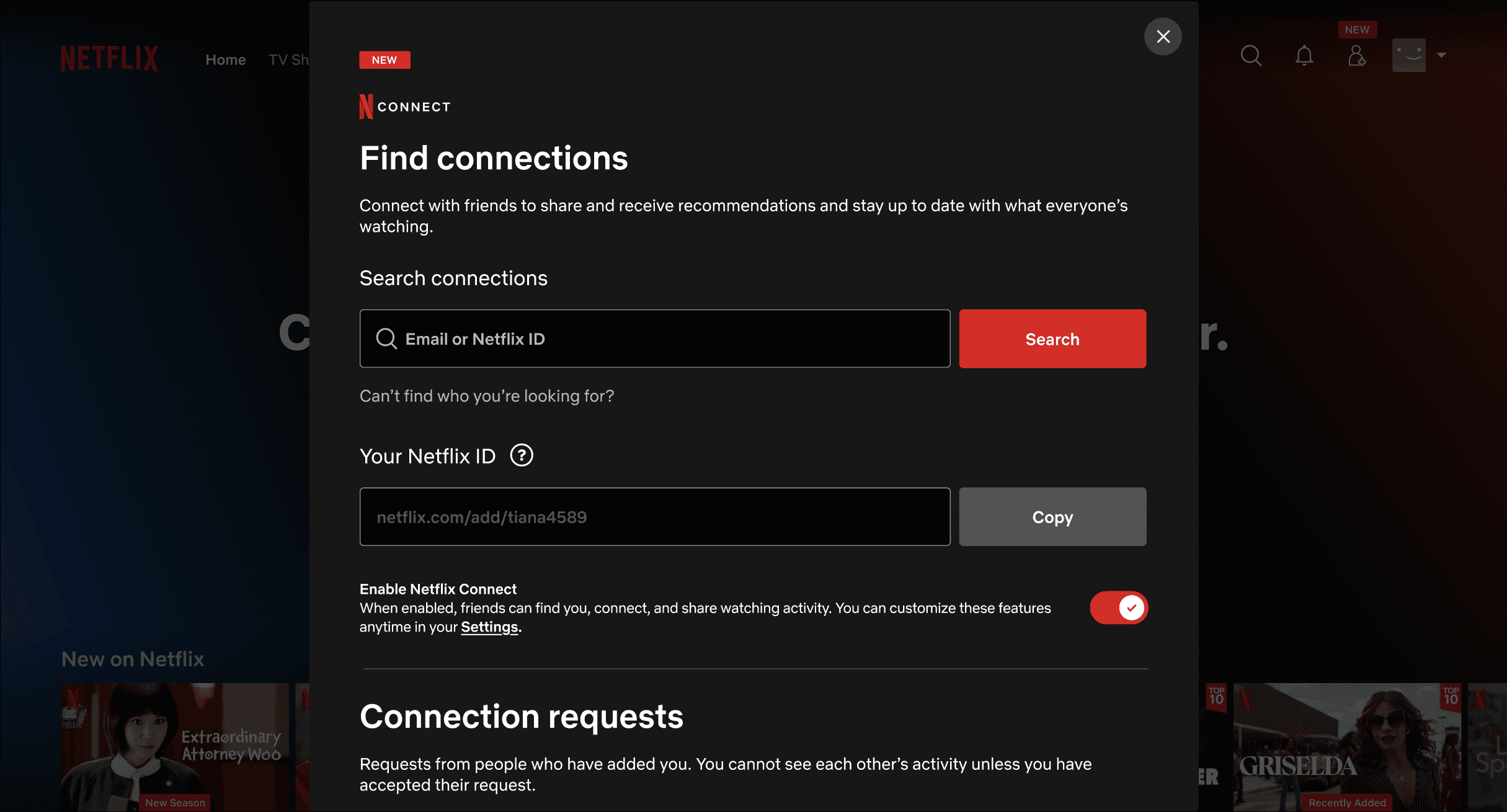 When turned off—users can't find or be found by others, and can't share or see friend activity until they choose to re-enable Netflix Connect
