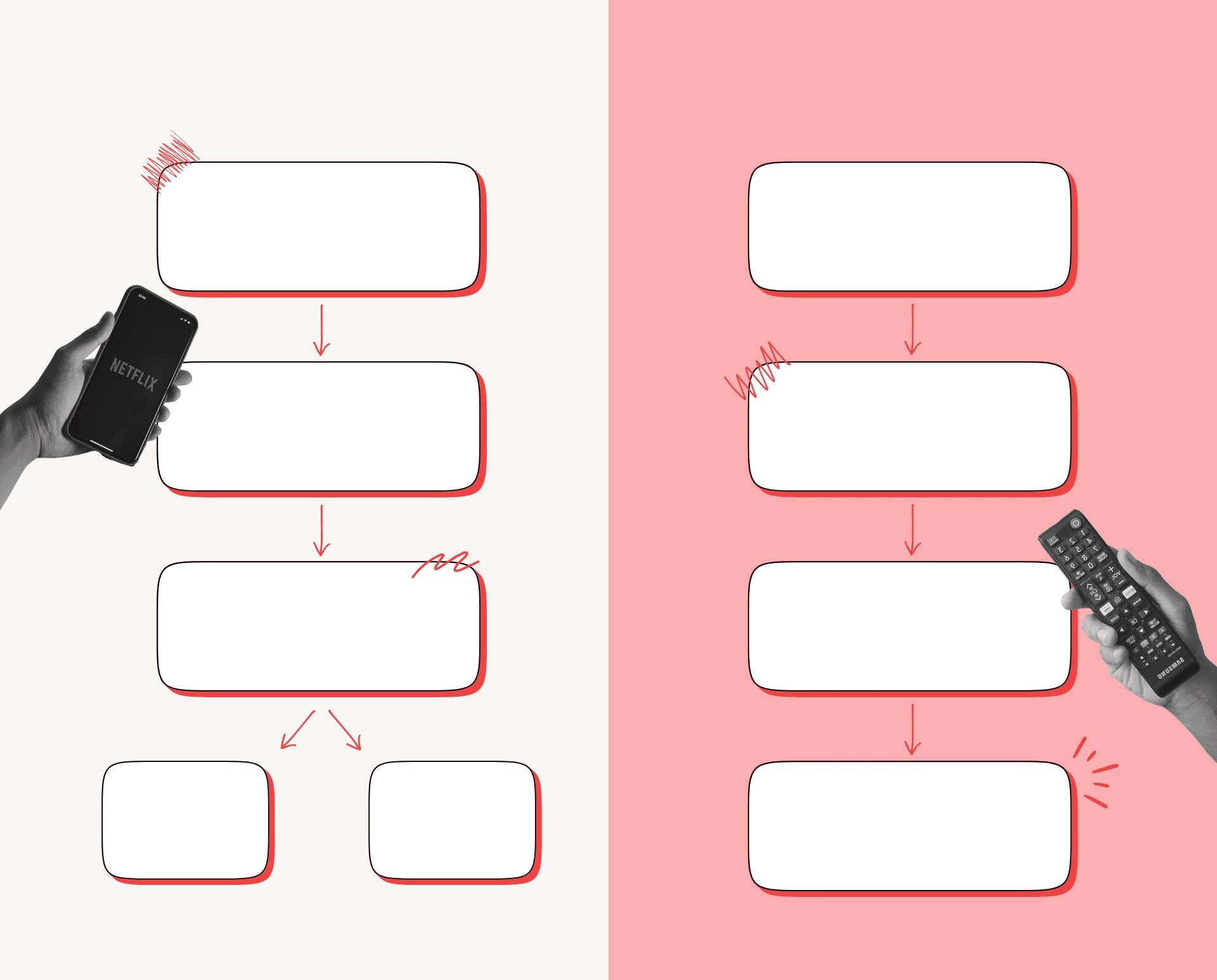 With the context from the secondary research, I interviewed 6 regular users of Netflix and other streaming platforms. The research revealed two distinct user behaviours when it comes to finding something to watch: