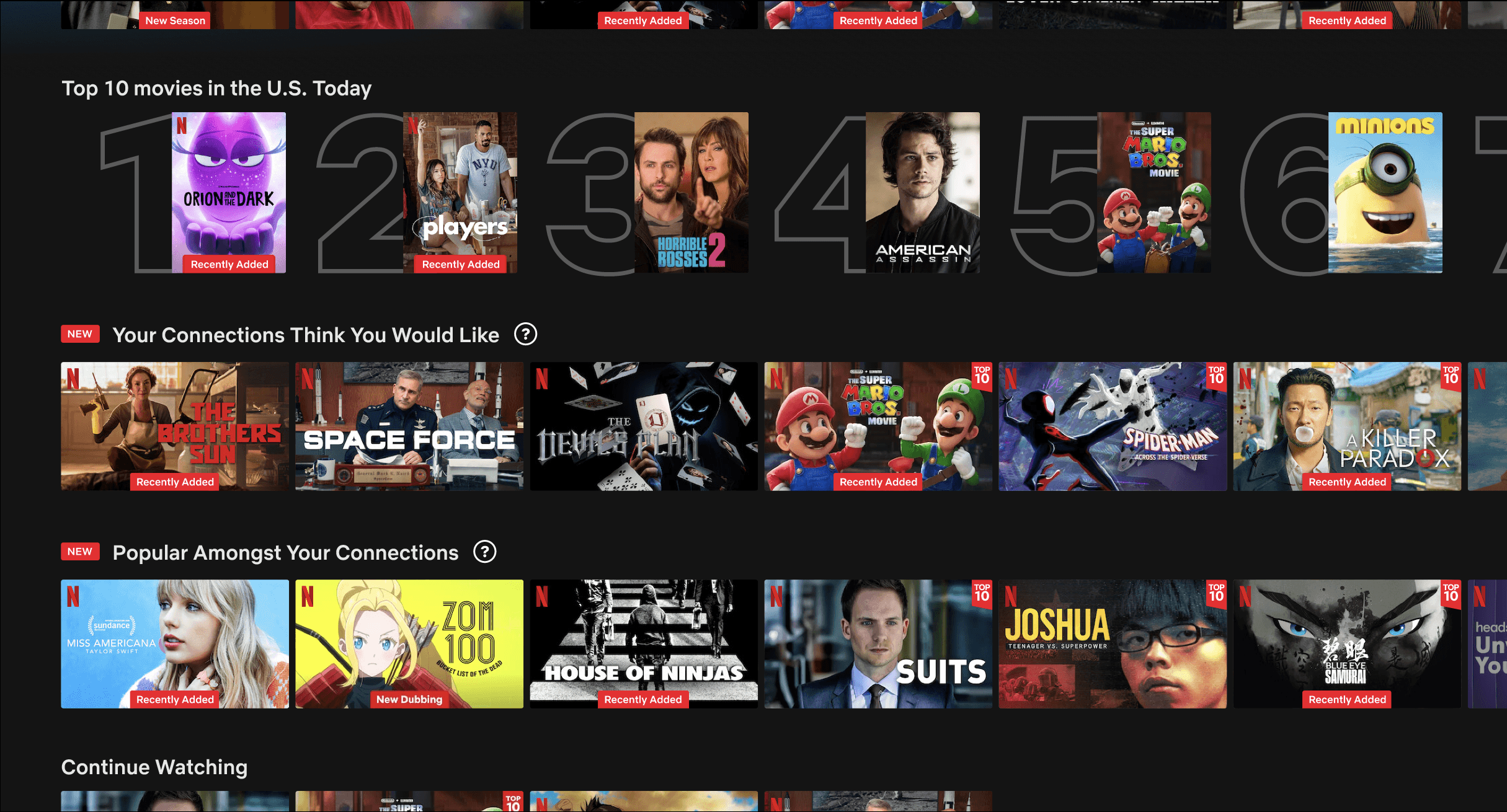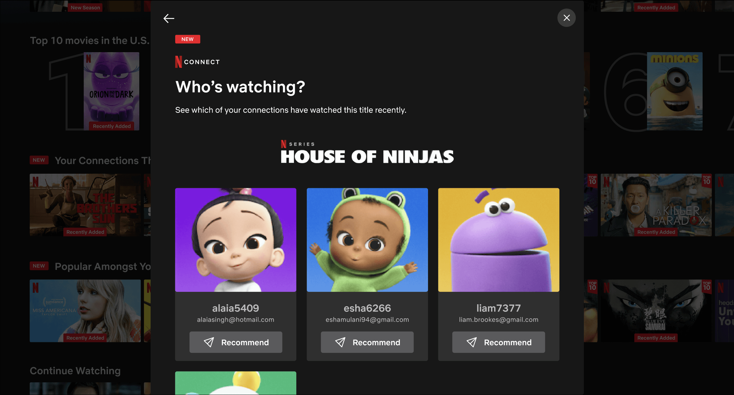 Netflix Connect is a social discovery feature that enables users to share and receive recommendations and view friend activity directly within Netflix. By integrating the recommendation system users already trust most—their social networks—the feature replaces generic algorithmic suggestions with social proof from people who know their taste best.