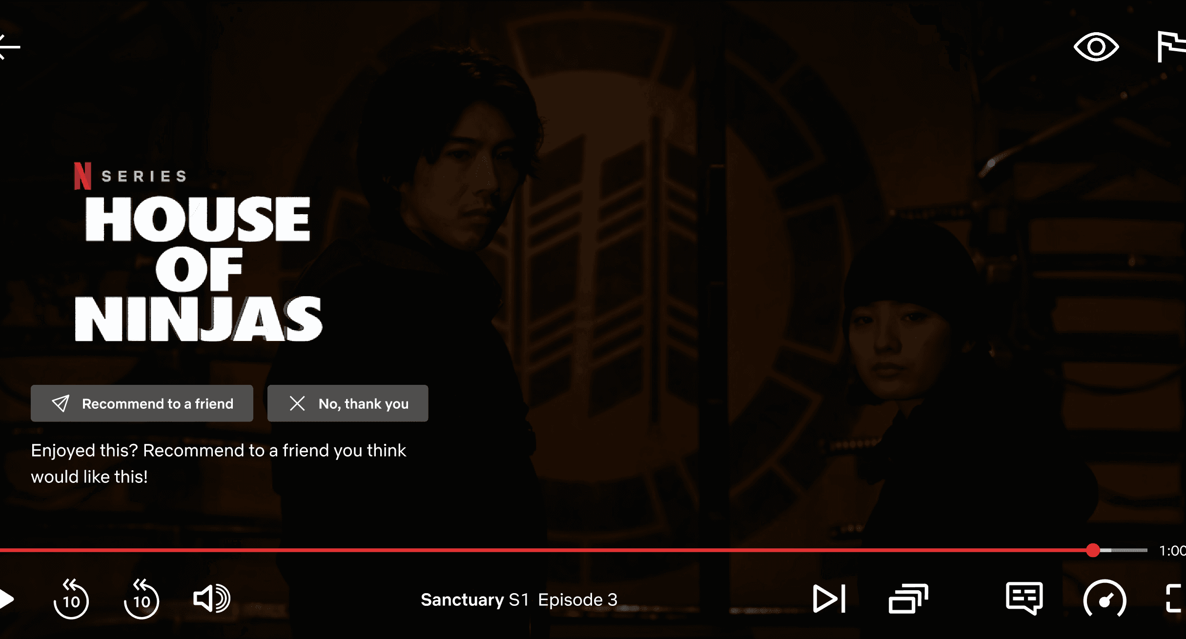 Recommendation prompt provided at the end of a title - similar to current like/dislike feature