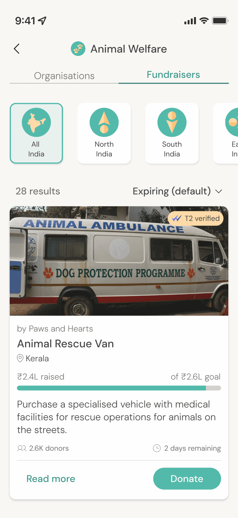Users assumed donations to an organisation automatically went towards its active fundraisers, not realising these were separate donation opportunities.