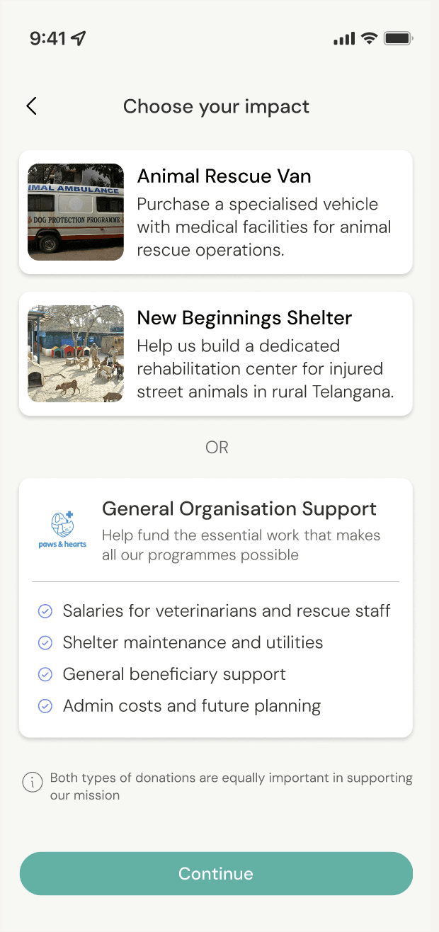 Users needed both emotional connection AND practical control—they wanted to feel moved by causes while maintaining agency over where and how their donations were directed.