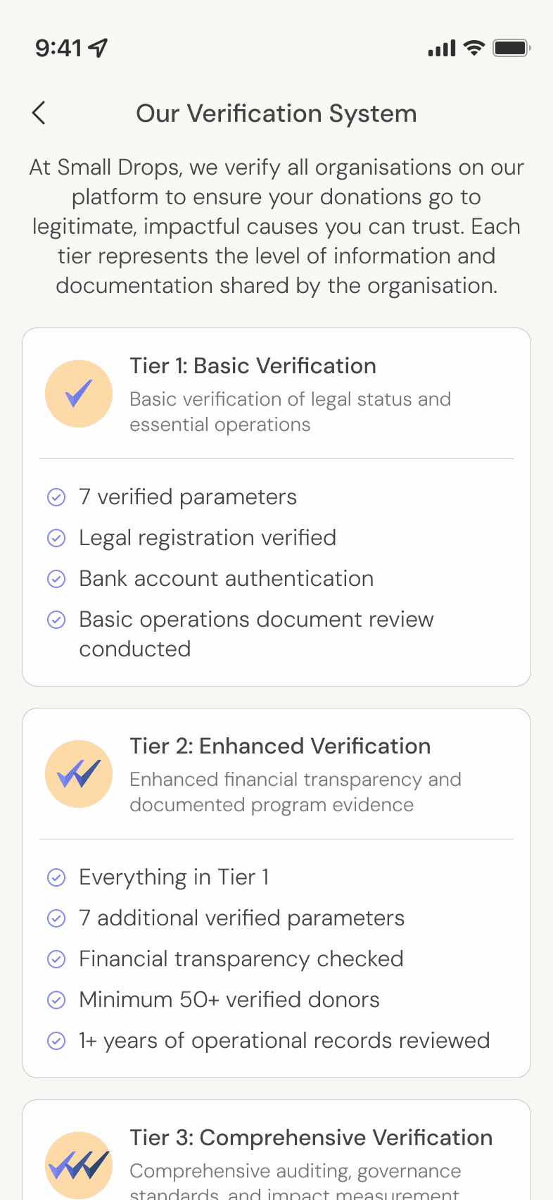 Simple tier-based verification system that immediately indicates organisation legitimacy