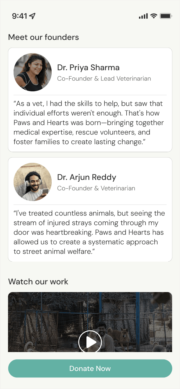 Organisation profiles felt formal and impersonal, missing the emotional connection users needed to engage fully.