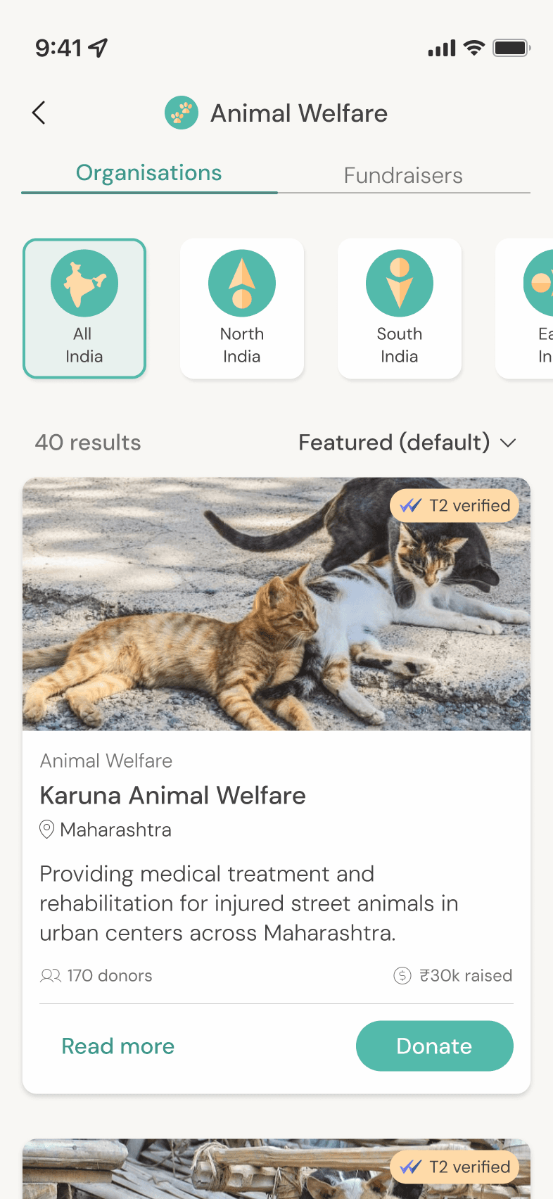 Users wanted the option to support causes in specific regions but could only filter by cause, limiting their ability to find organisations in their areas of interest.